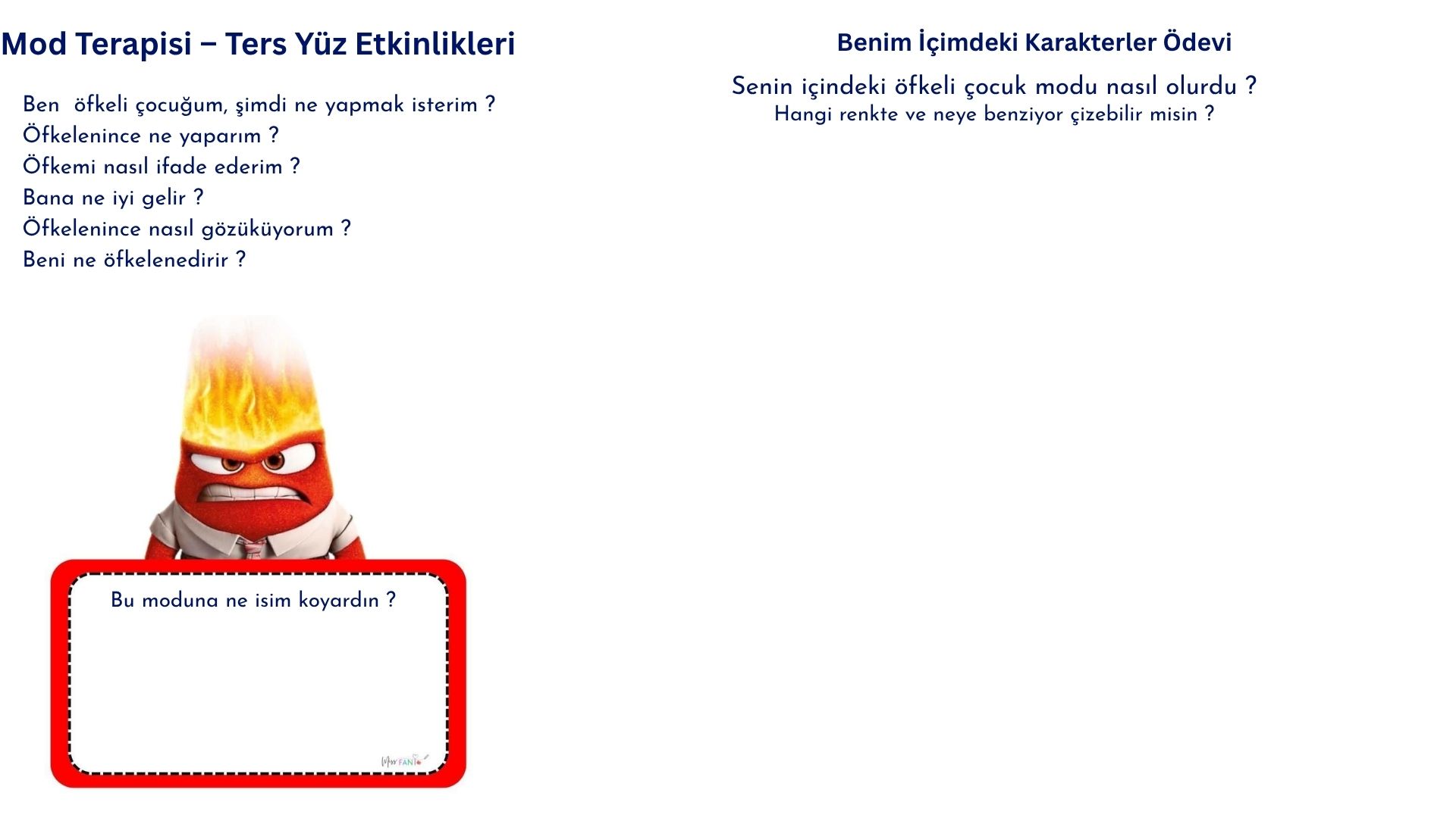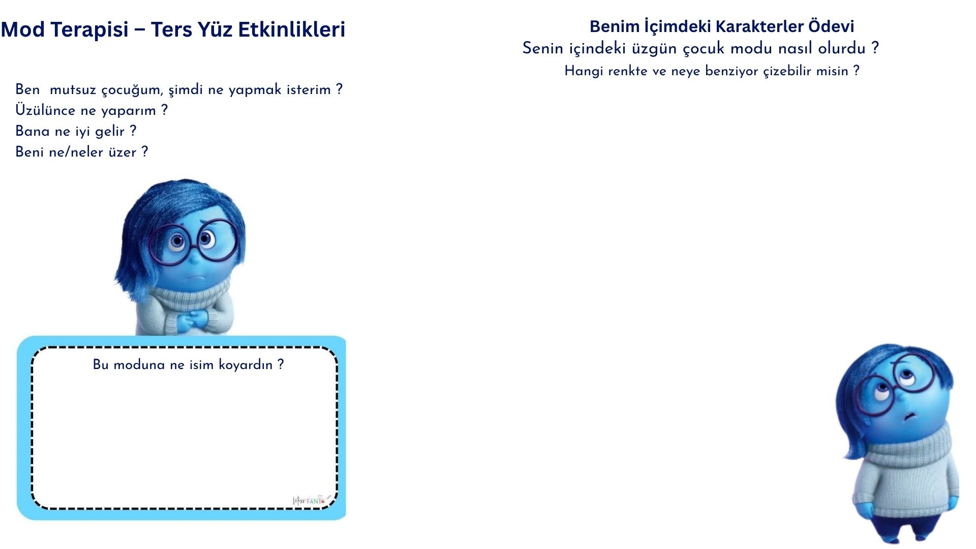 Çocuklar İçin Mod Terapisi Çocukluk Modları Etkinlik 5 - Ters Yüz ( inside out )