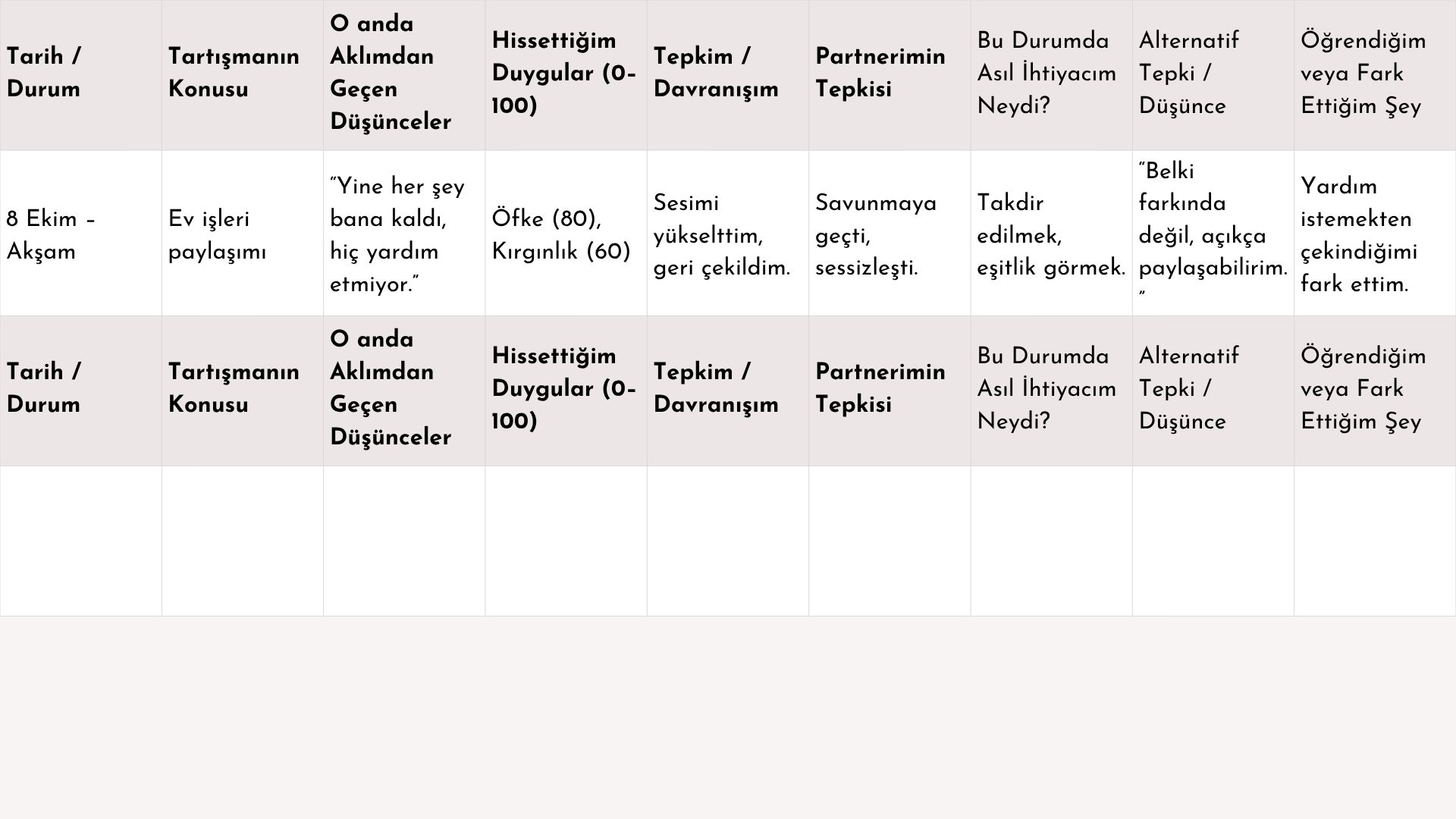 Çift Terapisi Çalışma Kağıdı-Bilişsel Davranışçı Terapi Ölçeği 2